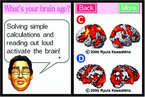 Brain Age: Train Your Brain in Minutes a Day is a fun, rewarding form of entertainment everyone can enjoy. Inspired by cutting-edge neuroscience, it's a full set of reading and mathematic exercises that stimulate the brain. At the start, you'll take a series of tests and get a score that determines how old your brain is. This is your "Brain Age" -- by performing daily exercises just minutes a day over weeks and months, the better you'll get and the lower your Brain Age will get.