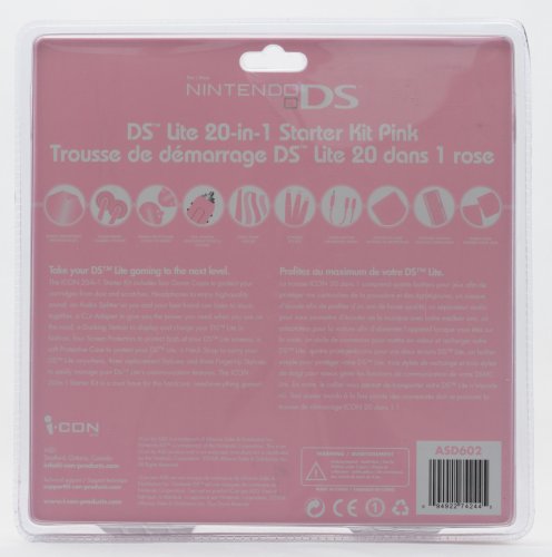 Take your DS Lite gaming to the next level. The ICON Starter Kit includes four Game Cases to protect your cartridges from dust and scratches, Headphones to enjoy high-quality sound, an Audio Splitter so you and your best friend can listen to music together, a Car Adapter to give you the power you need when you are on the road, a Docking Station to display and charge your DS Lite in fashion, four Screen Protectors to protect both of your DS Lite screens, a soft Protective Case to protect your DS Lite, a Neck Strap to carry your DS Lite anywhere, three replacement Styluses and three Finger-tip Styluses to easily manage your DS Lite's communication features.